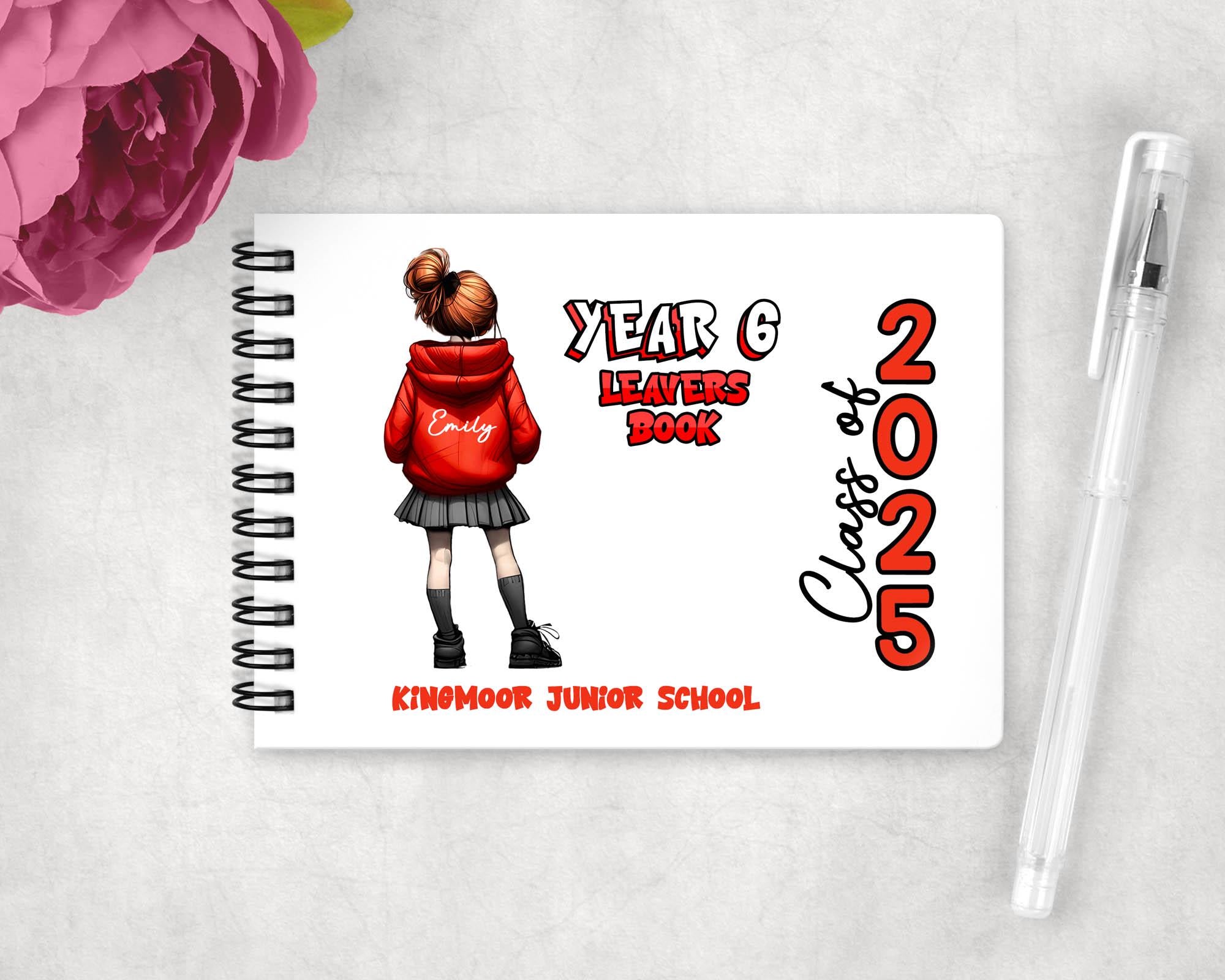 Introducing a practical A6 notebook designed for school leavers, perfect for collecting messages, signatures, and memories all in one place at the end of the school year. You can personalise by choosing your school colour, selecting the child's hair style and colour, and adding a name along with the year group.
