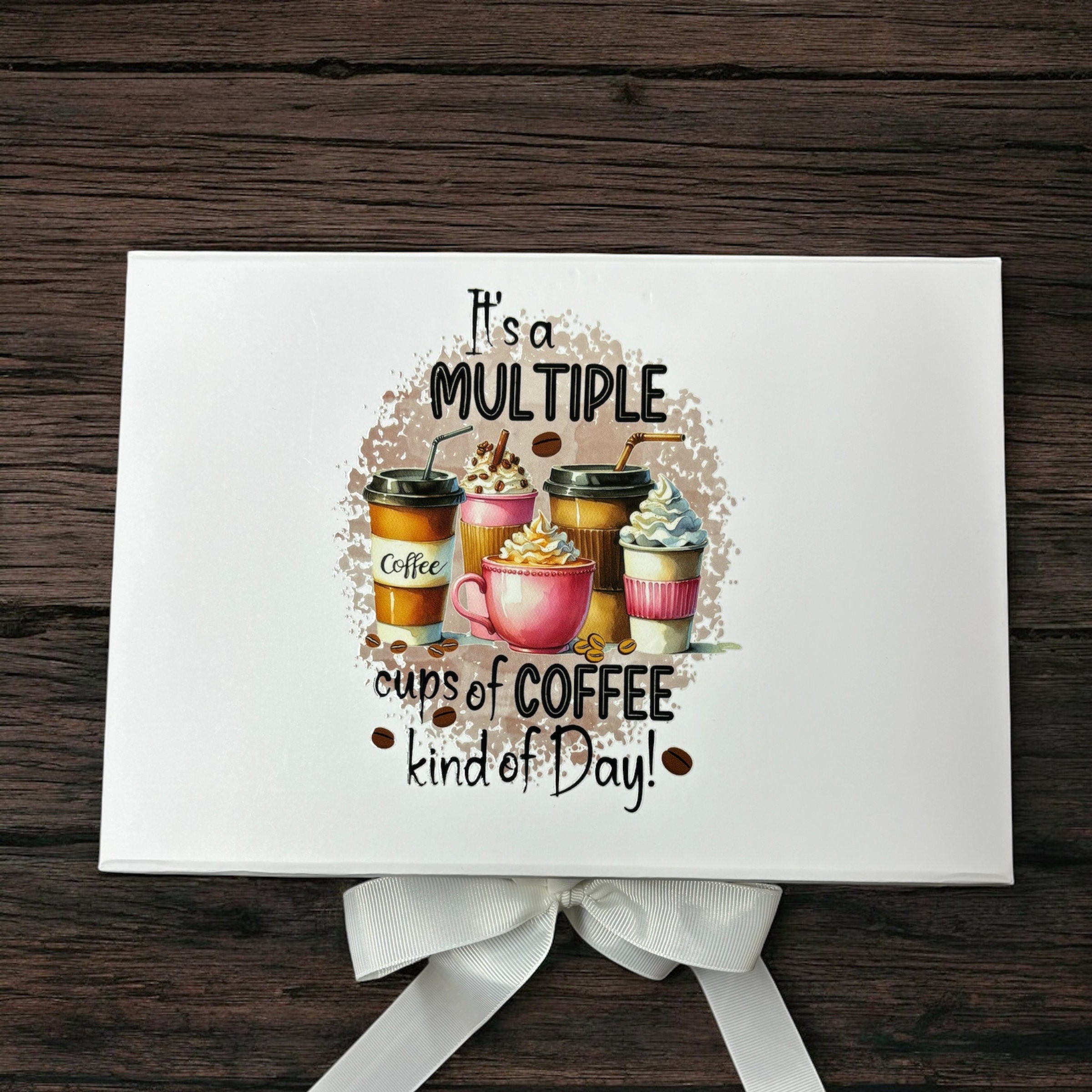 A lovely, sturdy coffee-themed box that you can personalise with a name and your message. Perfect for birthdays, Christmas, Mother's Day, Father's Day or just to say thank you. It also doubles up as a handy storage box once gifted.