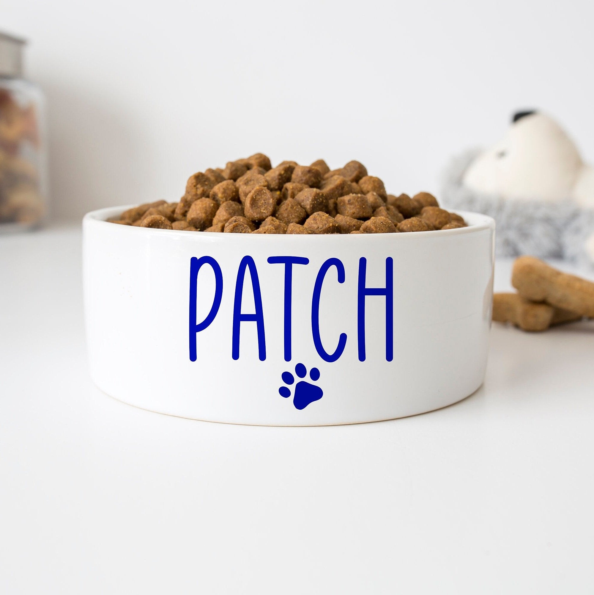 Display your pet's name on a personalised ceramic bowl printed with their name and a paw print. This makes a considerate gift or a special surprise for your fluffy companion. The paw print is an optional addition, and there are various font styles and colours to choose from to personalise your bowl exactly as you wish.