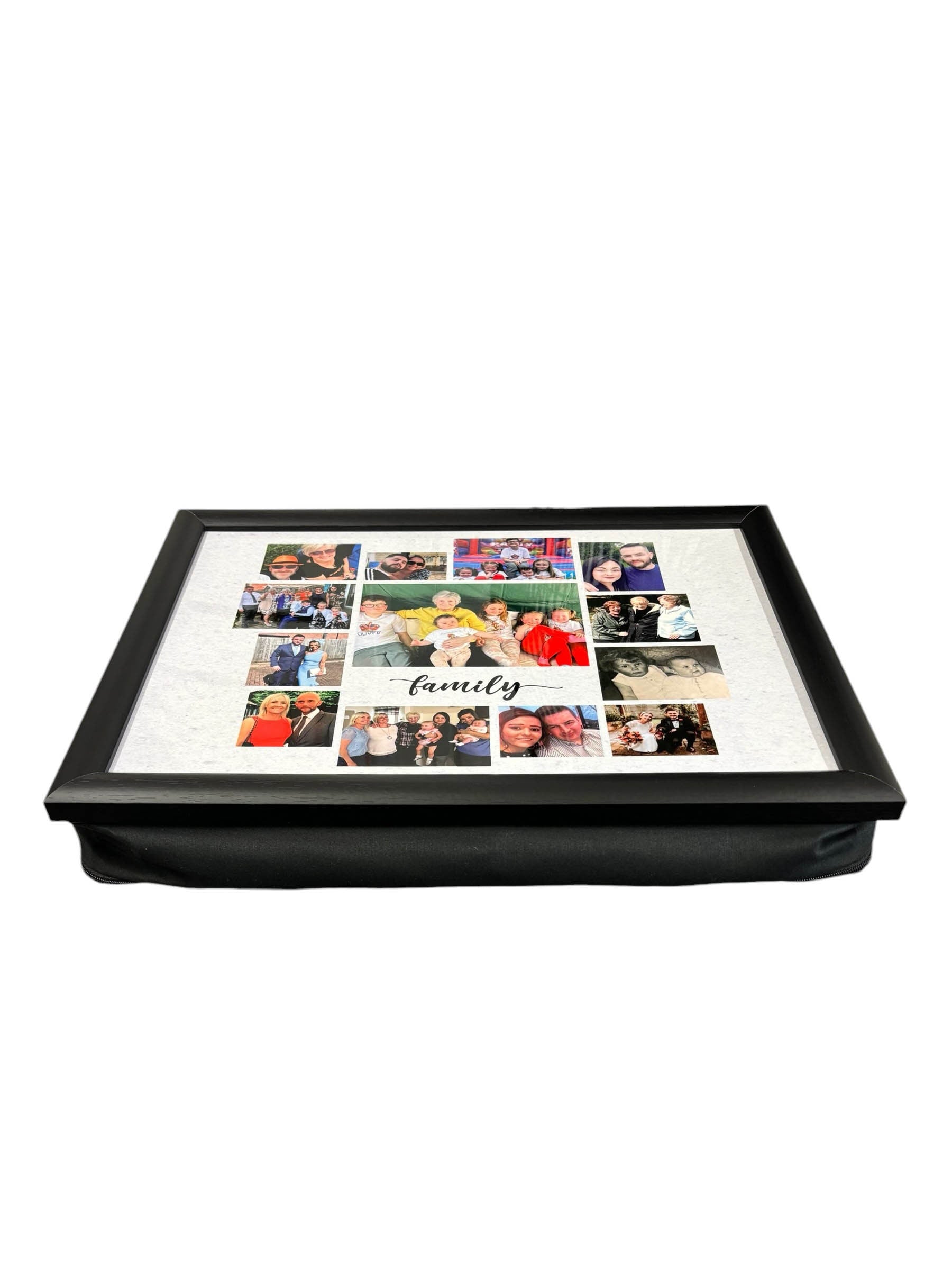 Capture your cherished memories with our unique personalised lap tray. This thoughtful gift is perfect for birthdays, Mother's Day, Christmas, or any special occasion. You can customise it with 13 of your own family photos and add personalised text. Not only is it a heartfelt gift, but it's also incredibly practical. The soft back, filled with polystyrene beads, ensures stability on your knee, allowing you to enjoy a meal comfortably, enjoy a drink and snacks, or keep your tools and accessories within easy reach during hobbies.