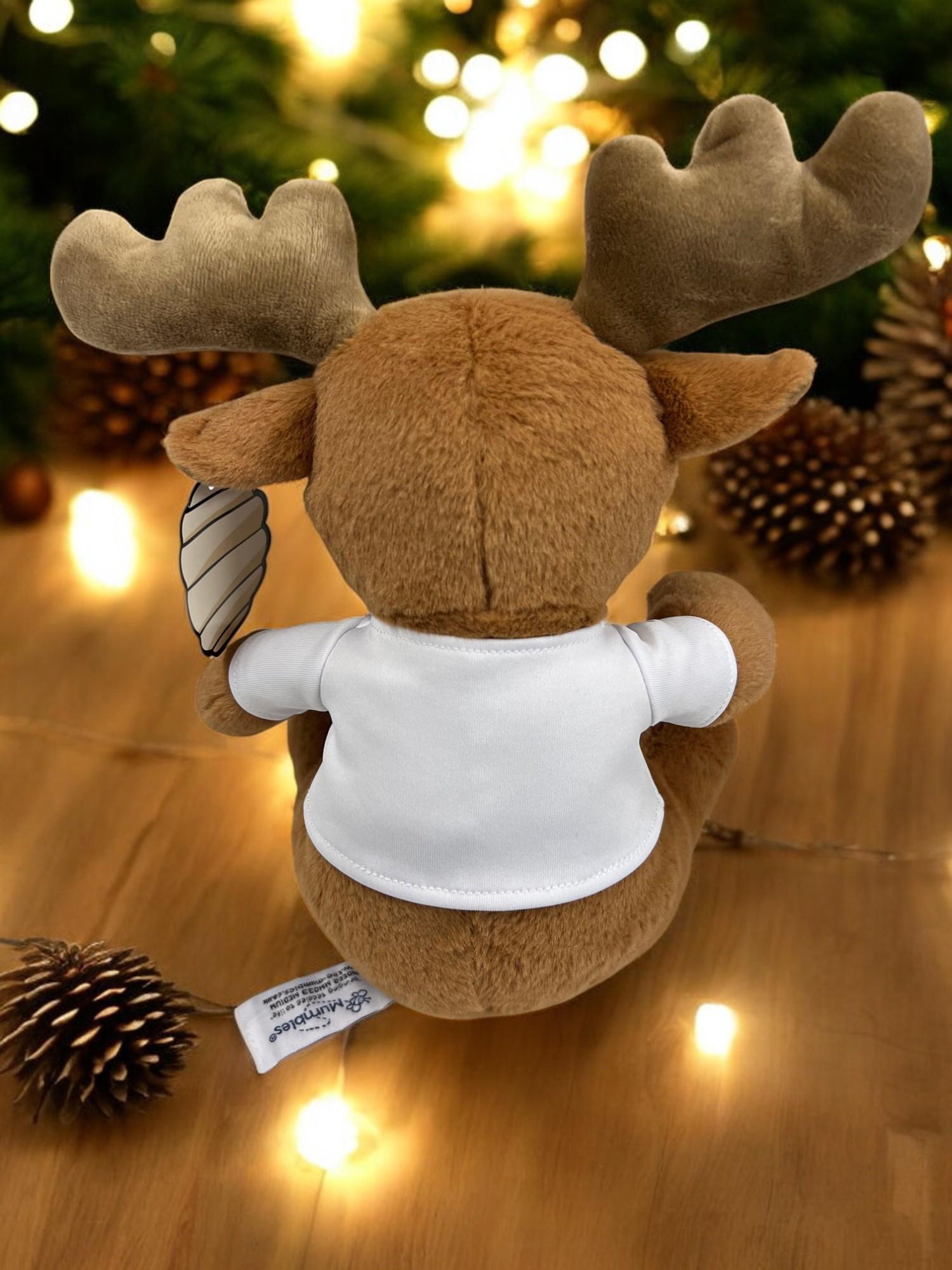 The reindeer plush comes with a cute, removable t-shirt, making it easy to keep clean and allowing for a change of style whenever desired. You can wash the t-shirt as needed, or remove it entirely to preserve it as a treasured memento. The image on the front of the t-shirt is printed directly onto the t-shirt and made to order.