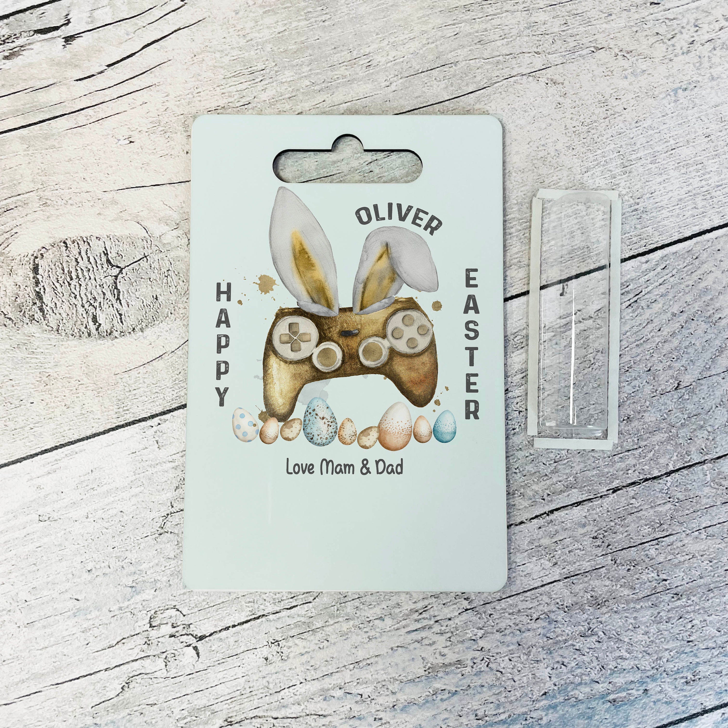 This personalised money wallet is a great Easter gift option, especially for gaming fans who prefer a non-chocolate gift. The wallet can be customised with the name of the recipient and, optionally, the name of the person giving the gift. It is made of MDF wood and includes a plastic pocket at the bottom for storing cash. Please note that the plastic holder is designed to fit rolled-up £5 and £10 notes, but not £20 notes.